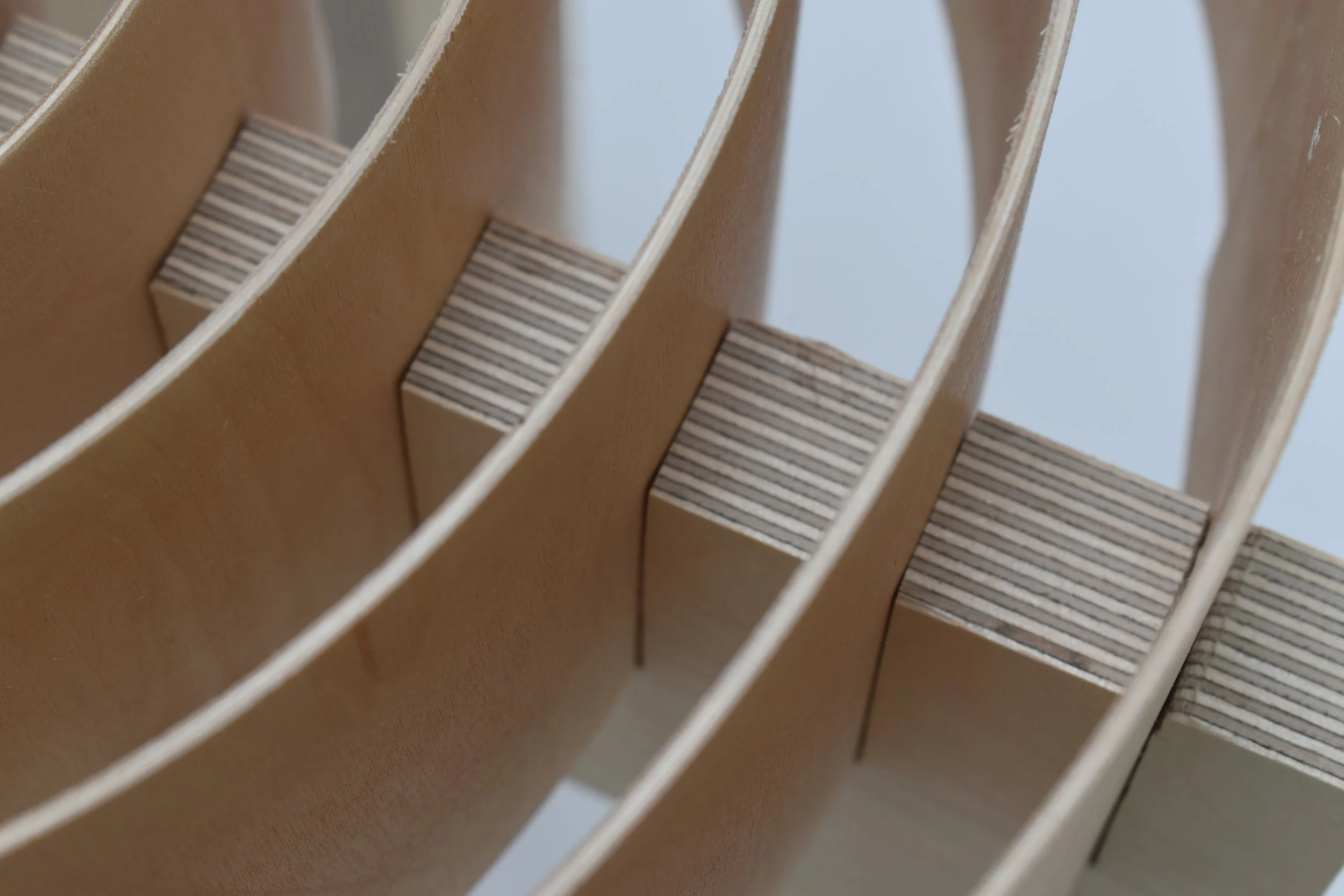 Through a the design constraint of flat packing and only being able to use the thickest and thinnest material available to me, I was able to push the boundaries of plywood construction, exploring new assembly methods and structural possibilities that challenge traditional joinery and material limitations.